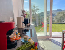 Property IDCasa Luca, 2-room house 55 m2, on the ground floor. Spacious and bright, modern and tasteful furnishings: 1 room with 1 double bed (1 x 160 cm). Exit to the garden, to the terrace. Kitchen-/living room (oven, dishwasher, 4 induction hot plates, toaster, kettle, microwave, freezer, electric coffee machine, Capsules for coffee machine (Lavazza)) with dining table, 1 double sofabed (1 x 160 cm), satellite TV, air conditioning and electric shutters. Exit to the garden, to the terrace. Shower/bidet/WC. Air-conditioning, forced-air heating. Large terrace 20 m2. Terrace furniture, barbecue (portable), deck chairs (2). Beautiful panoramic view of the valley. Facilities: washing machine, iron, children's high chair, baby cot, hair dryer. Internet (WiFi, free). Parking (fenced). Please note: private entrance. IT008031C22IDL9B37