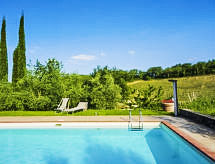 Agriturismo Le Mura: Country estate producing pure olive oil and DOCG Chianti wine. It is possible to take part in the grape harvest at the end of September and the olive harvest in November. The enclosed grounds of vines and olive groves are 8 ha in size, situated in typical Tuscan countryside. In the centre of the Florence/Siena/Arezzo triangle, in the best starting location for cultural trips which, on request, can be organized by the owner along with transport and excursions (extra). Every service available in Bucine. Spaccio Prada, 3 km. 4 mountain bikes available to guests. Stor bondegård Le Mura, renovert, omgitt av trær og jorder. 3 km fra sentrum av Bucine, 25 km fra sentrum av Arezzo, 35 km fra sentrum av Siena, i en roligt posisjon på toppen av en høyde, i det grønne. Fellesbruk: 1 badebasseng (7 x 14 m, dybde 160- 160 cm dyp, 01.05.-30.09.) med innbygdetrapper. Utendørs dusj. I anlegget: trådløst LAN [WLAN], solterrasse, sentralvarme, vaskemaskin (for felles bruk ekstra). Sengetøyskift 1 ukentlig. Romrengjøring på forespørsel (ekstra). Stuepike på forespørsel (ekstra). Tilgang med bil hele veien til huset. Parkering ved huset. Daglivarehandel 3 km, supermarked 3 km, restaurant 3 km, togstasjon Bucine, varmtvannsbad 20 km. Attraksjoner i nærheten: Firenze 55 km, Siena 35 km, Arezzo 30 km.
